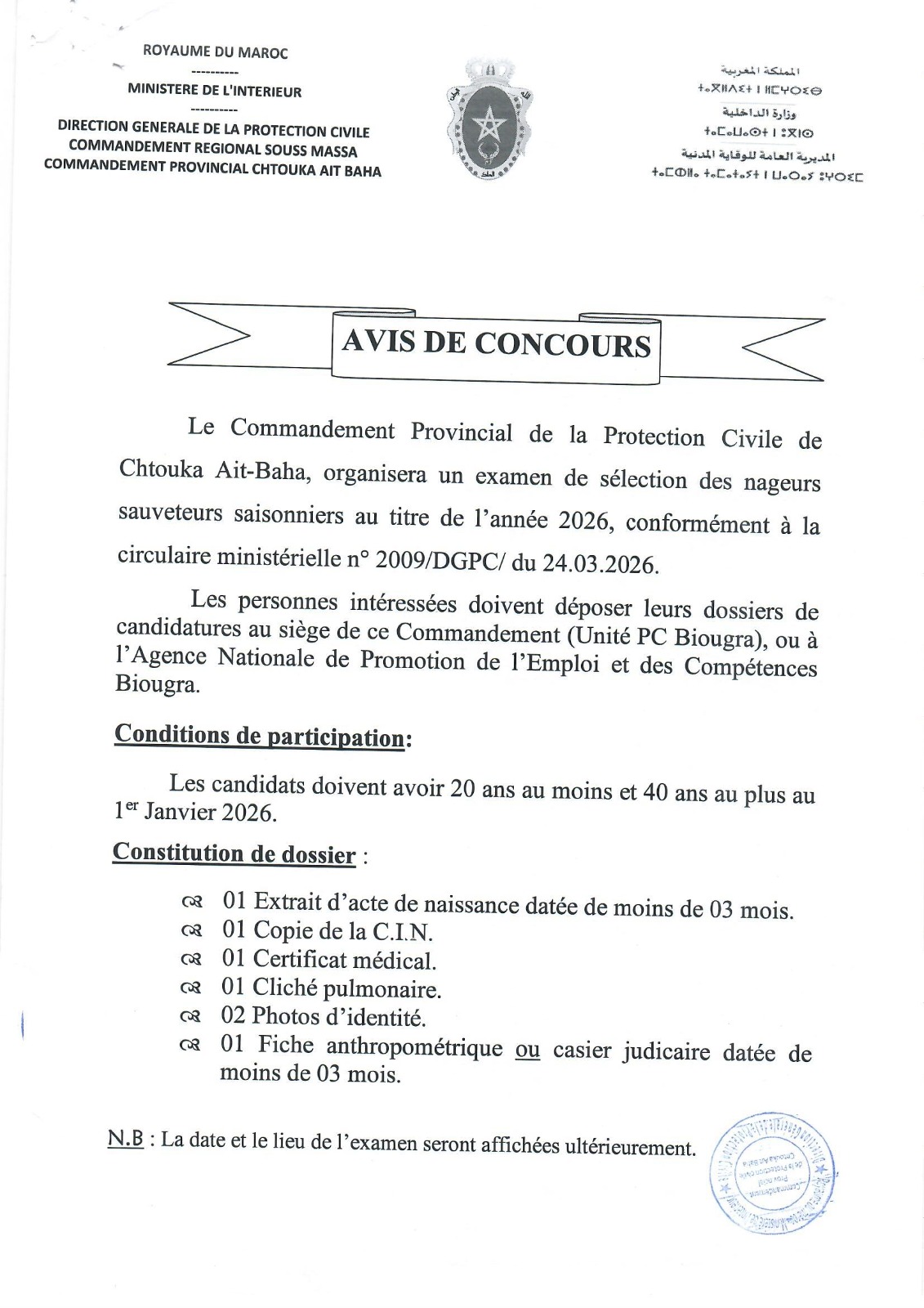 إعلان عن مباراة امتحان معلمي السباحة برسم سنة 2026